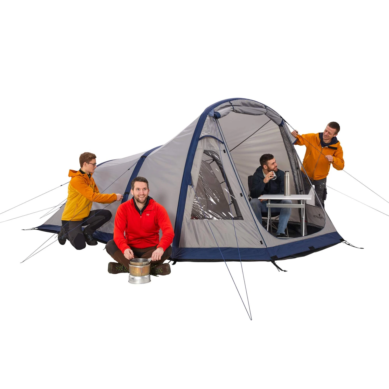 …benötigt eigentlich gar keine Beschreibung. Du musst das Zelt lediglich auspacken, flach auf dem Boden ausbreiten und die Luftkanäle mit der beiliegenden Pumpe aufpumpen. Anschließend kannst du das Zelt bereits mit den Heringen fixieren. Der Aufbau erfordert wenig Zeit und ist auch von ungeübten Zeltaufbauern im Handumdrehen erledigt. Besonders praktisch: Das Innenzelt ist am Außenzelt eingehängt und baut sich automatisch mit auf. Dadurch hast du innerhalb weniger Minuten eine komfortable Unterkunft.